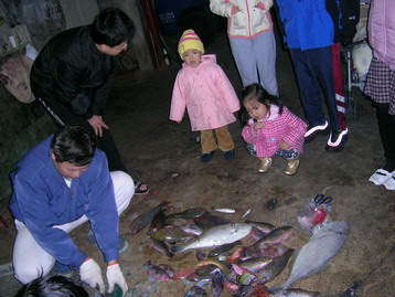 03麒麟講師、金城博士生處理魚獲。 |