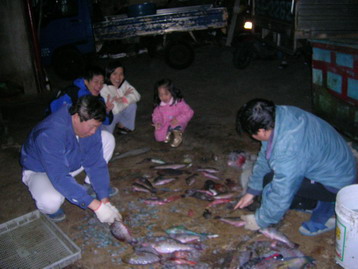 也撿了不少死魚。